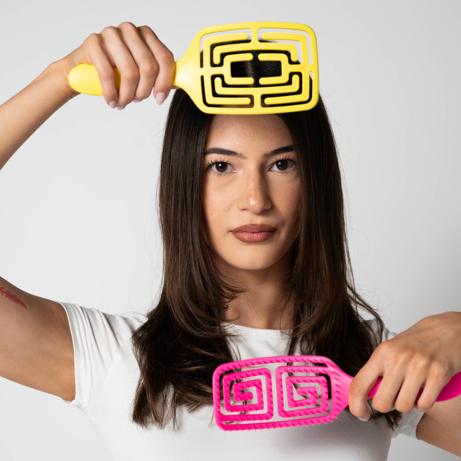 Advanced Flexible Design. The responsive bristles and subtly curved base work together to follow your scalp's natural contours. As you brush, the flexible design moves with you, eliminating knots without tension or breakage while providing gentle scalp stimulation. Effective detangling that respects both your hair and scalp.